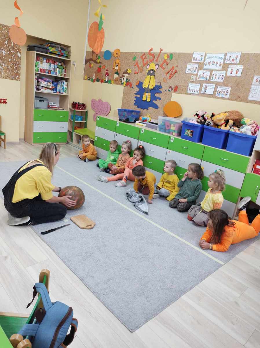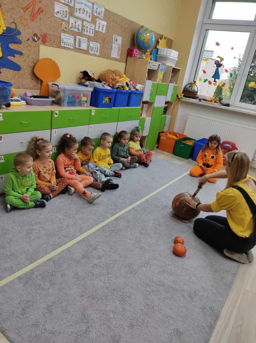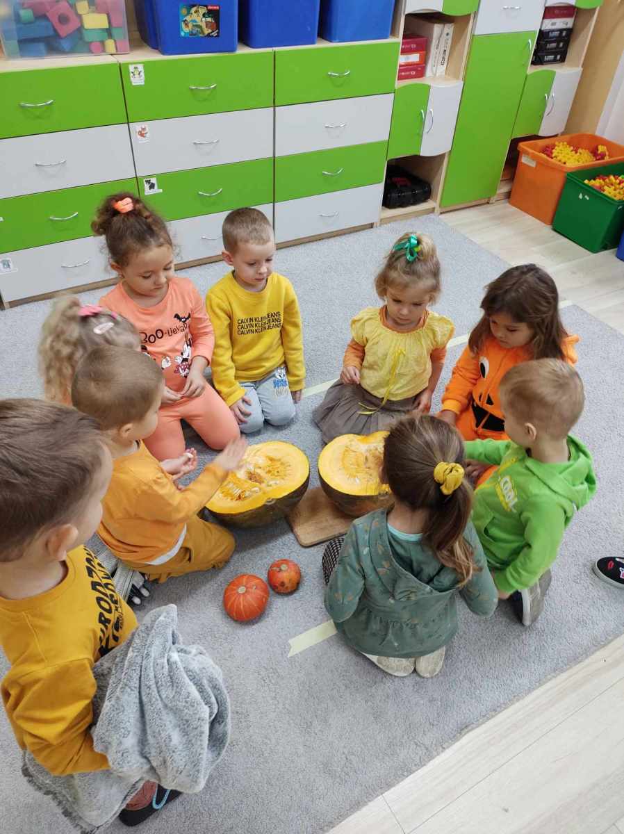 Dynia – to warzywo, które robi wrażenie przede wszystkim ze względu na swoje imponujące rozmiary, ale również ze względu na walory smakowe i kolorystykę. Przedszkolaki z grupy „Jeżyki”, celebrując Dzień Dyni, zajrzały do jej środka