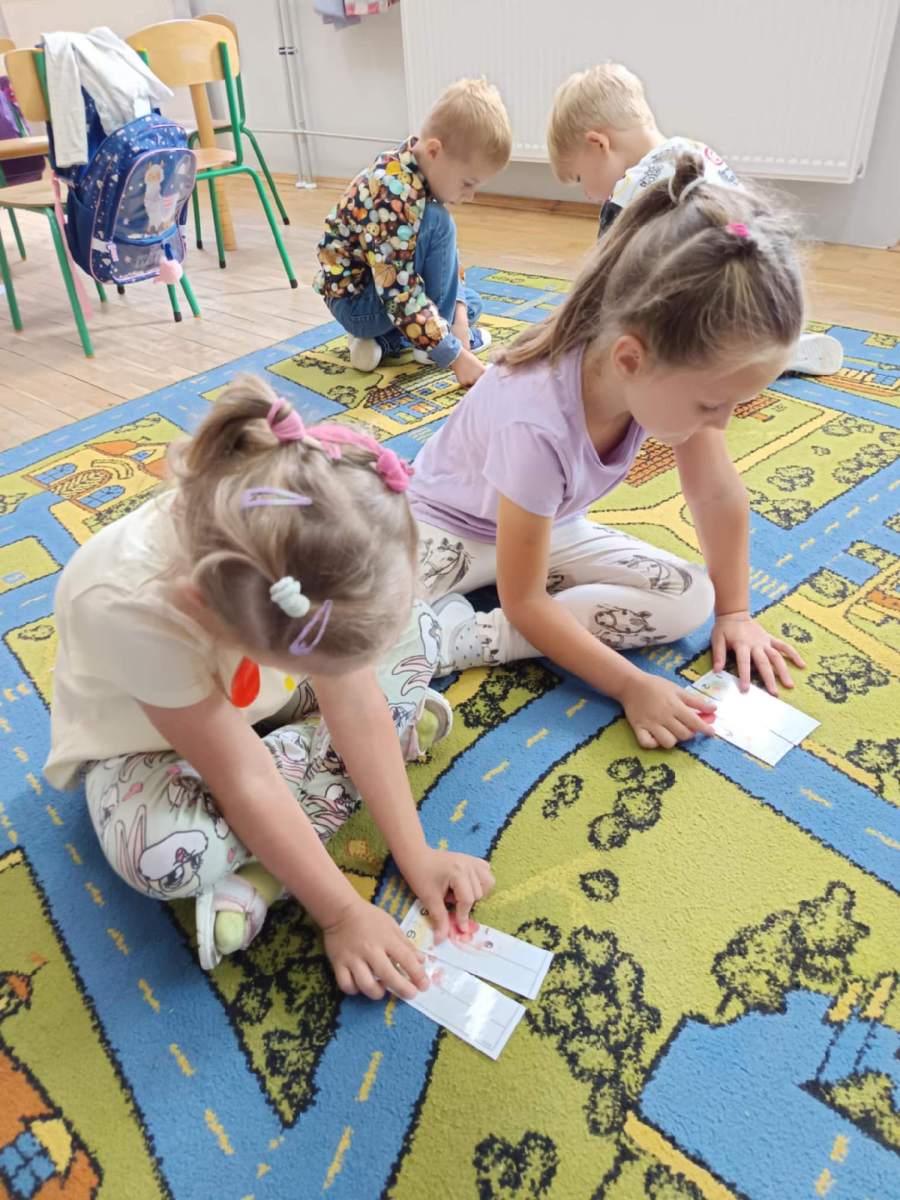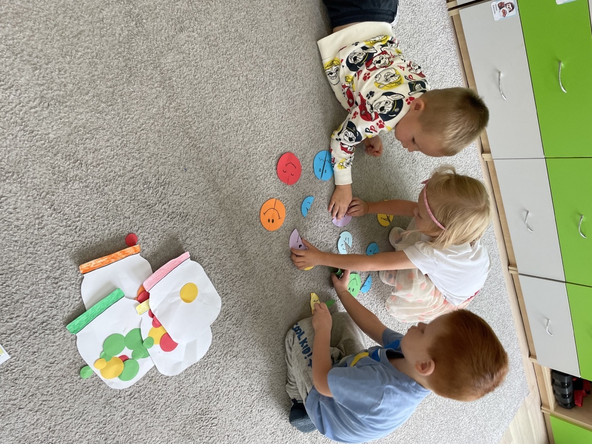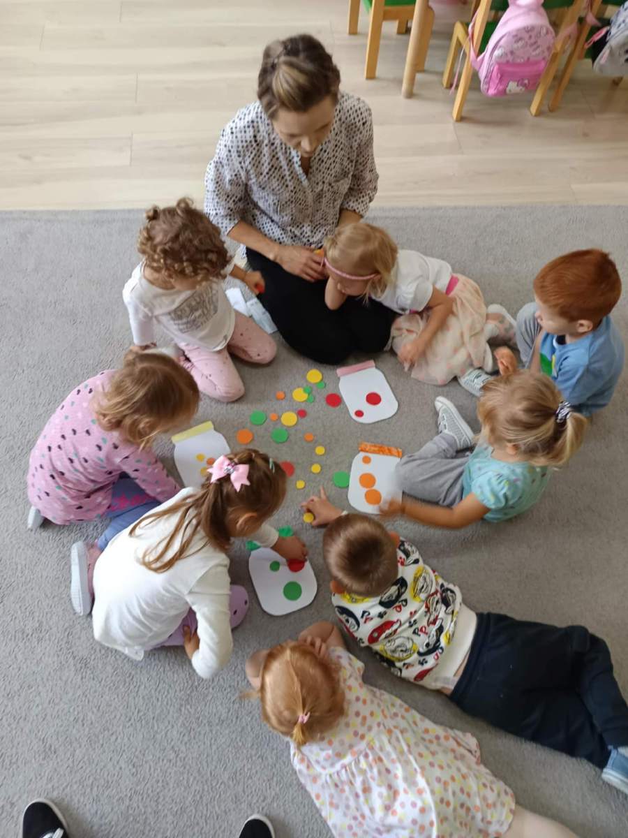 Najmłodsi uczniowie z wielkim zaangażowaniem i zapałem odnajdywali kropki według opisu, układali kropkowe puzzle, przyporządkowywali kropki do słoików według określonej cechy.
