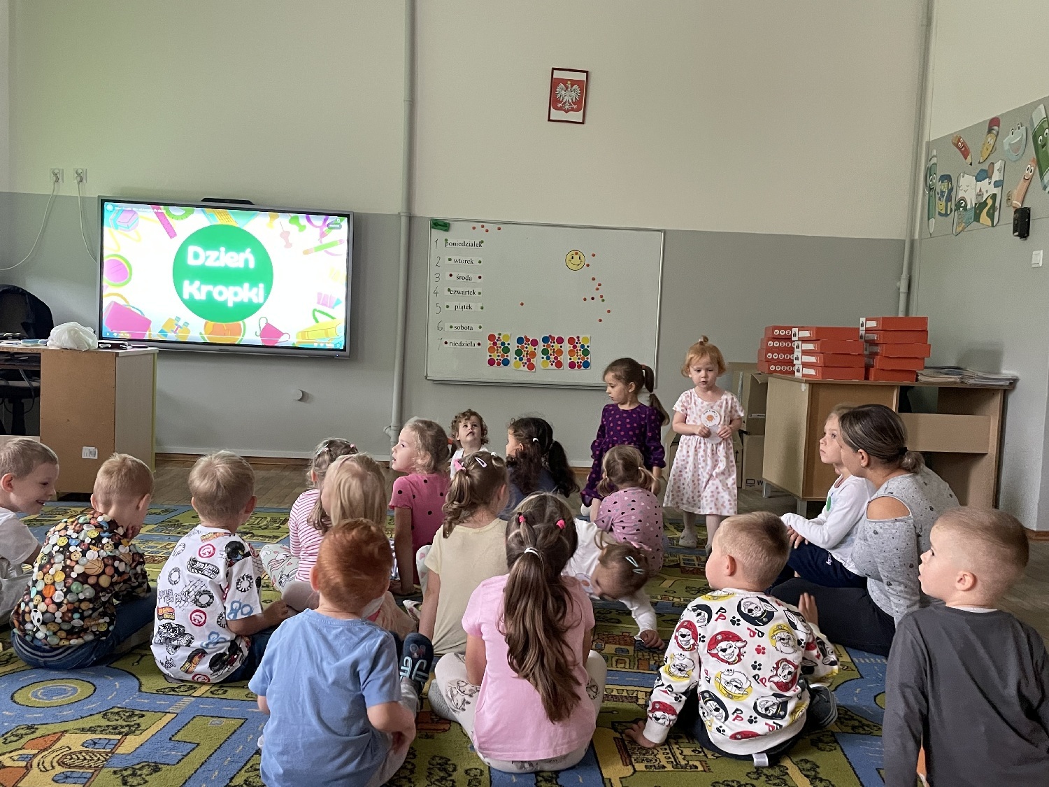Piętnastego września w grupach ,,Jeżyki” oraz ,, Biedronki” zagościli nietypowi goście. W salach przedszkolnych  zawitały różnego rodzaju kropki.