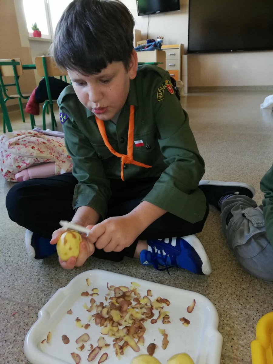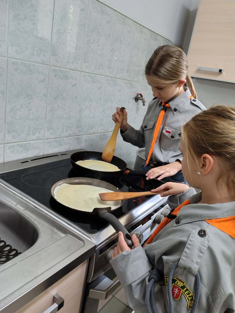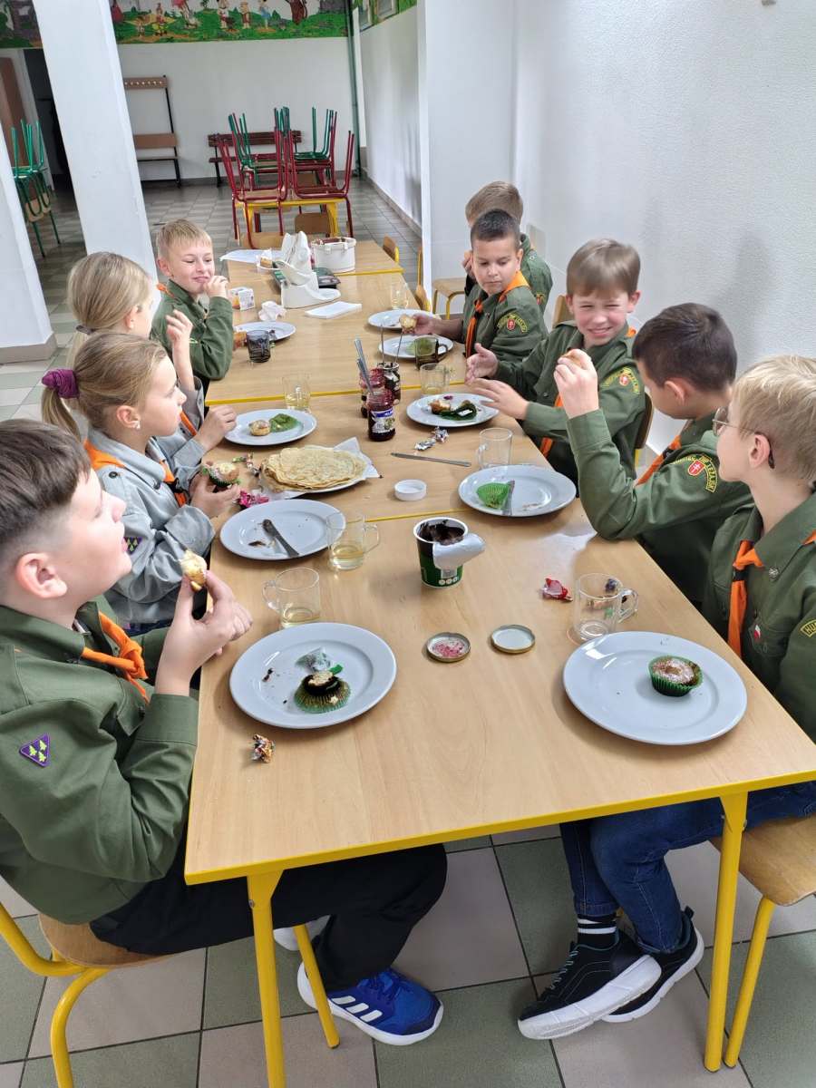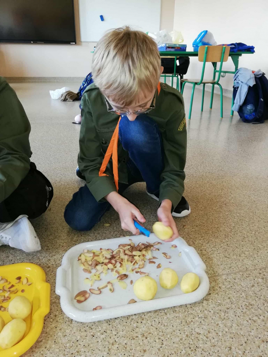 Zuchy obierały ziemniaki, a z części z nich wykonały piękne pieczątki, którymi ozdobiły swoje prace plastyczne. Samodzielnie, krok po kroku i z dużym zaangażowaniem, smażyły naleśniki oraz piekły babeczki, korzystając z przygotowanych wcześniej przepisów. Było trochę mąki na noskach, dużo śmiechu i jeszcze więcej satysfakcji z własnoręcznie przygotowanych pyszności!