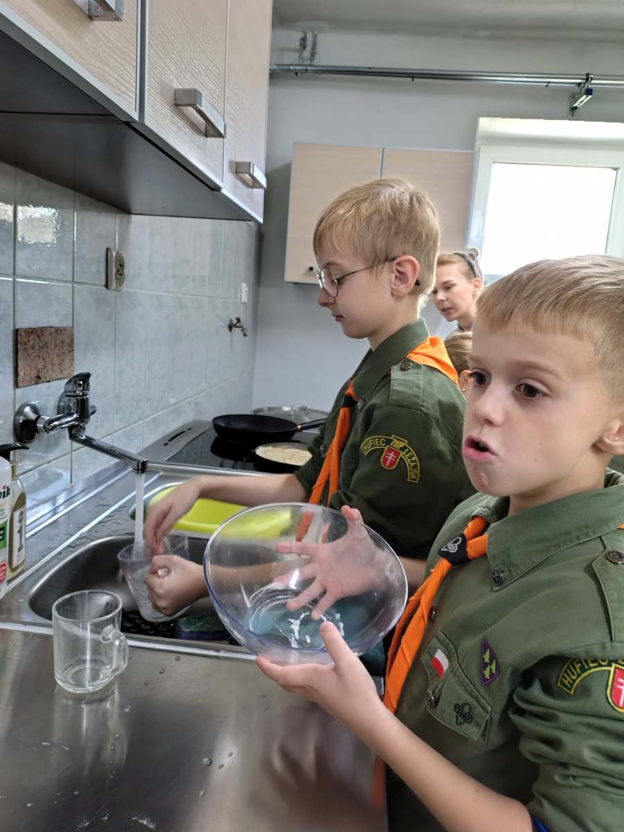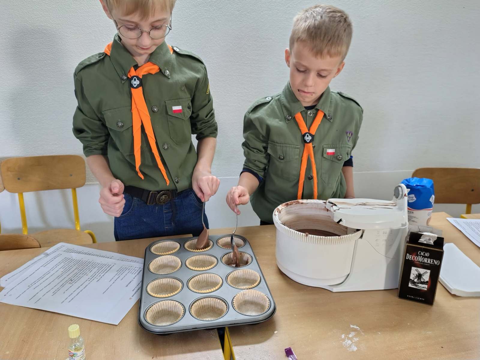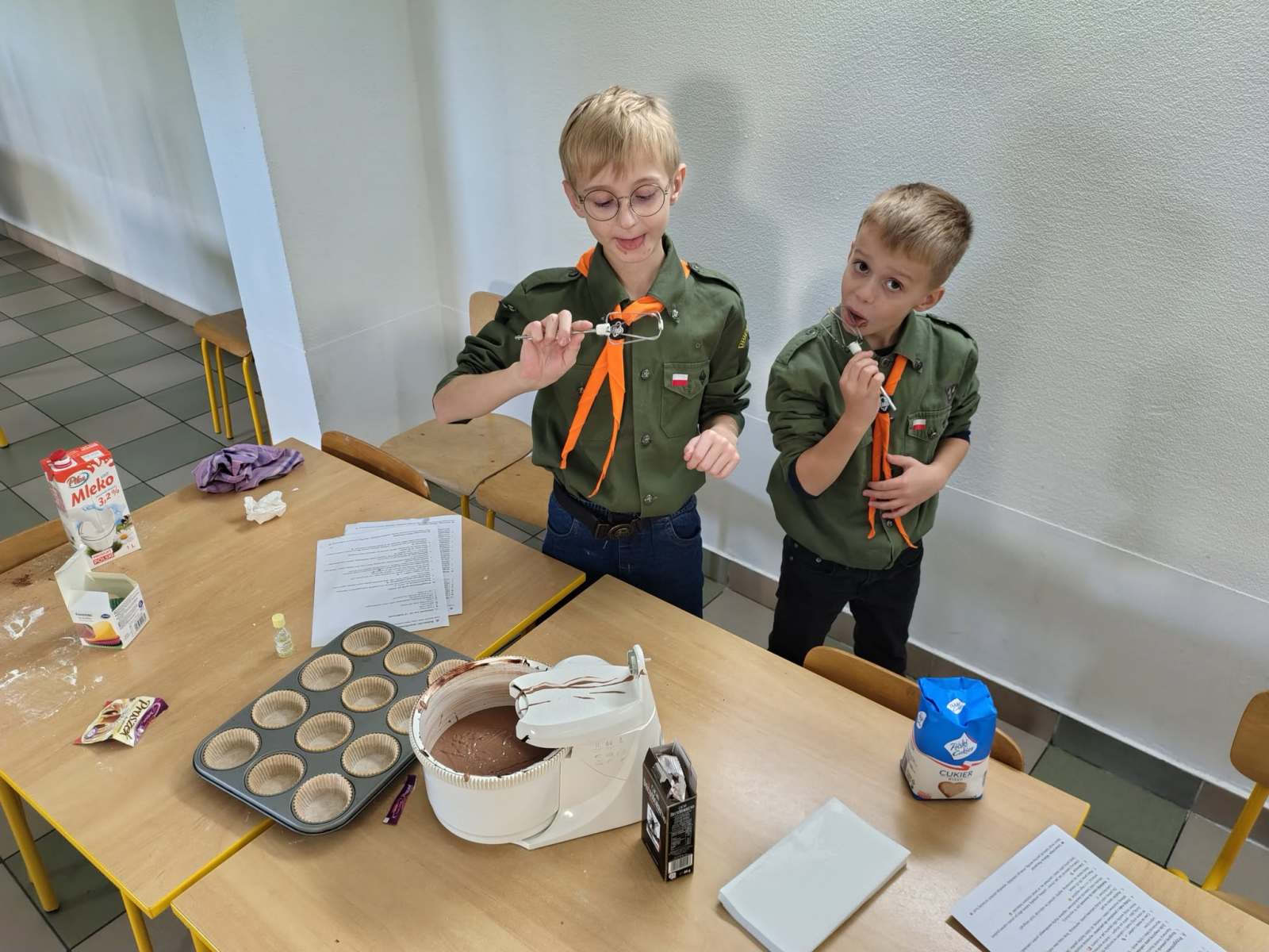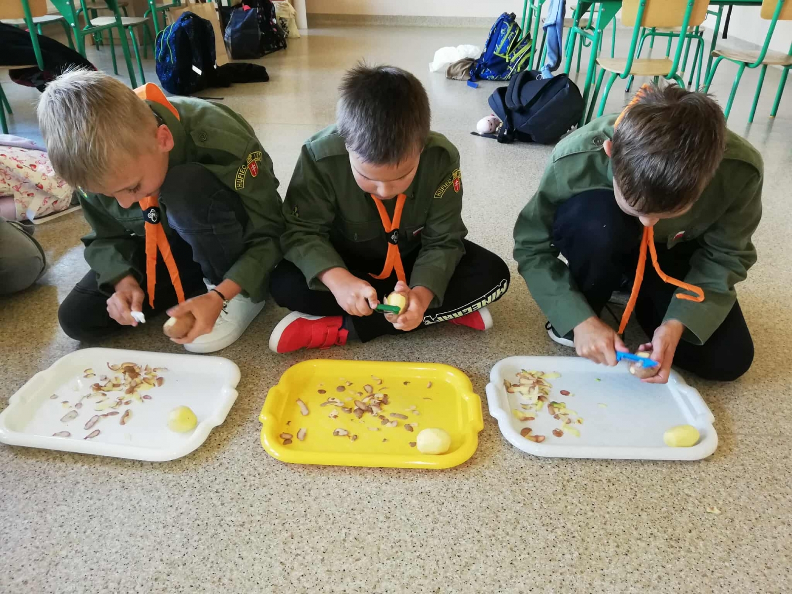 Zuchy obierały ziemniaki, a z części z nich wykonały piękne pieczątki, którymi ozdobiły swoje prace plastyczne. Samodzielnie, krok po kroku i z dużym zaangażowaniem, smażyły naleśniki oraz piekły babeczki, korzystając z przygotowanych wcześniej przepisów. Było trochę mąki na noskach, dużo śmiechu i jeszcze więcej satysfakcji z własnoręcznie przygotowanych pyszności!