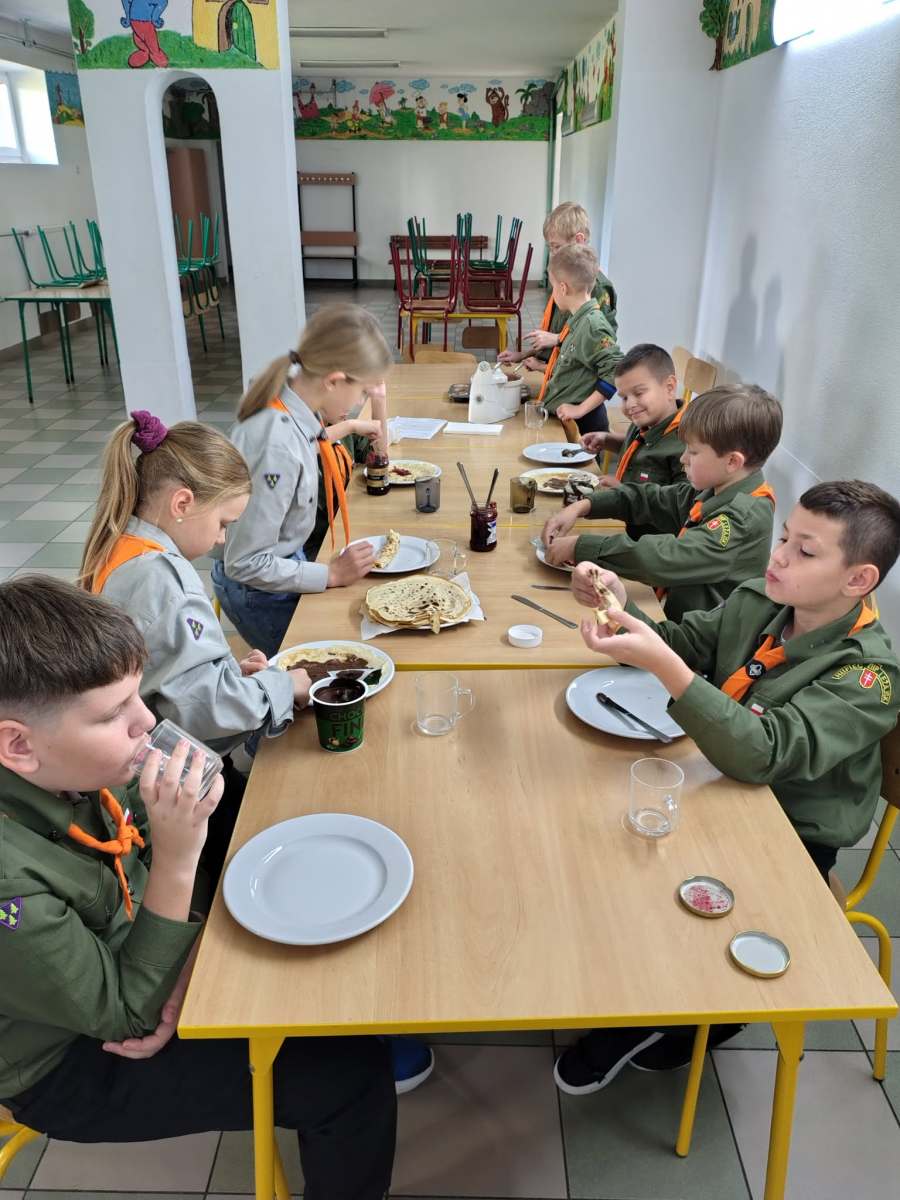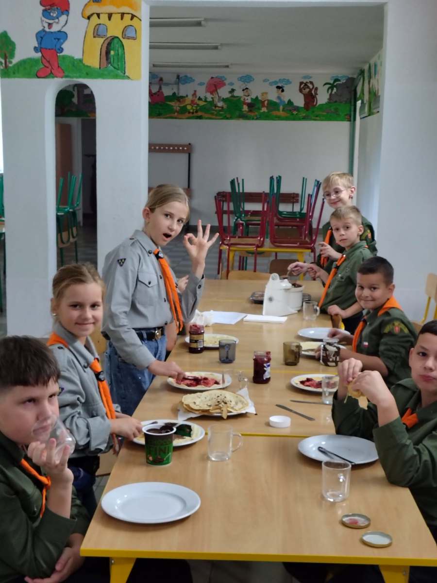 Podczas kręgu rady zuchy wspólnie zdecydowały, że pierwszym tropem, który będą zdobywać w tym roku, będzie Trop Kuchcika. Zuchy z ogromnym zapałem zabrały się do pracy i rozpoczęły swoją kulinarną podróż! Podczas zajęć dzieci poznawały różne zapachy i smaki, uczyły się zasad zdrowego żywienia, a także doskonaliły swoje umiejętności w kuchni.