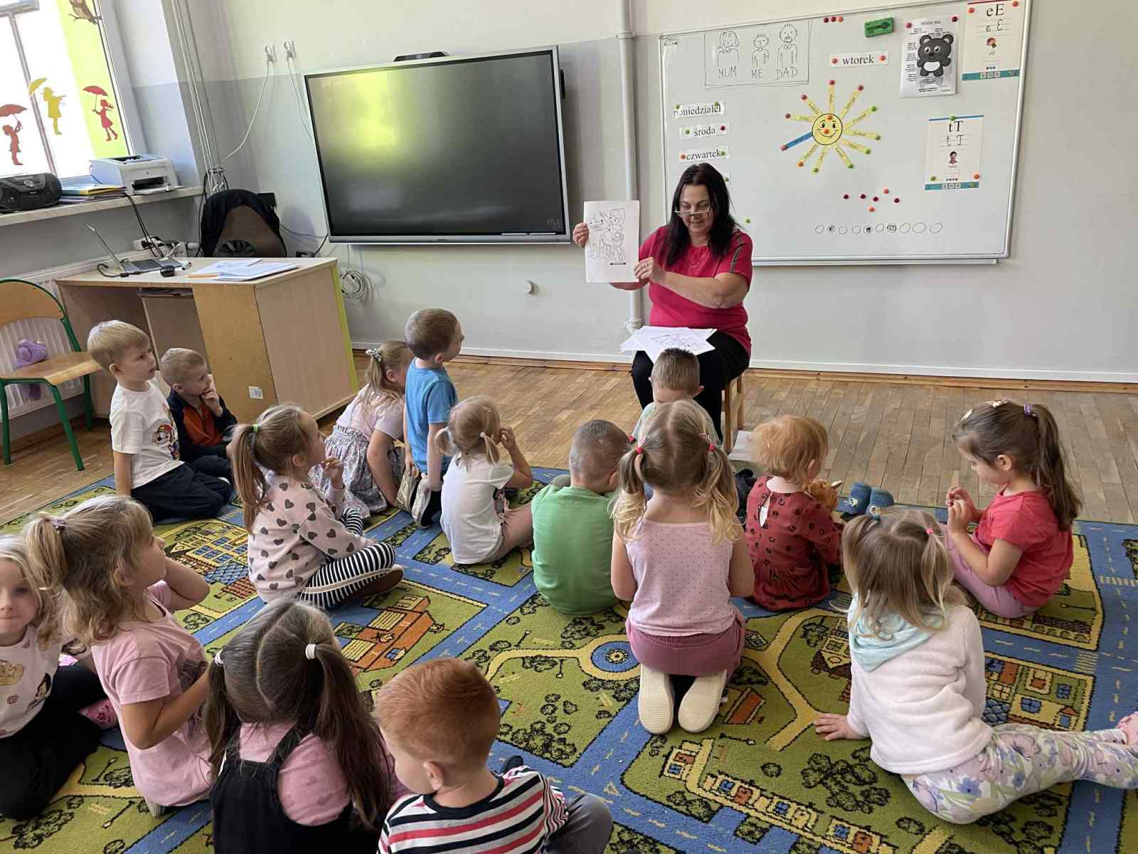 W tym dniu nie zabrakło najważniejszego – książek. W sali zorganizowano specjalny kącik, gdzie przez chwilę panowała cisza, przerywana jedynie głosem czytającego nauczyciela. Dzieci słuchały klasycznych bajek, rozmawiając o ich przesłaniu i morałach.