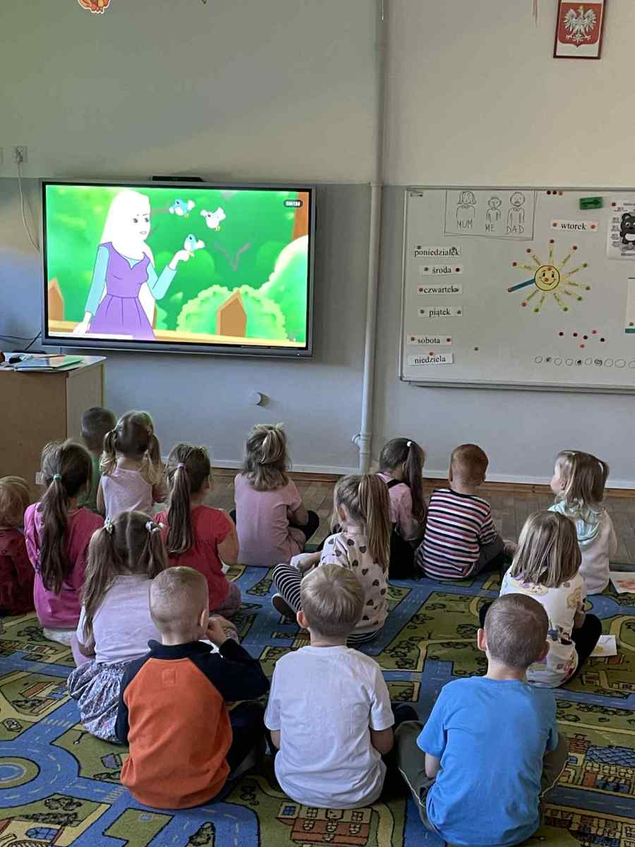 Wiele frajdy sprawił również najmłodszym krótki bajkowy seans. Okazało się, że wiedza przedszkolaków na temat bajkowego świata jest imponująca! Dzieci dobrze znają bajki i świetnie radziły sobie z zadaniami.