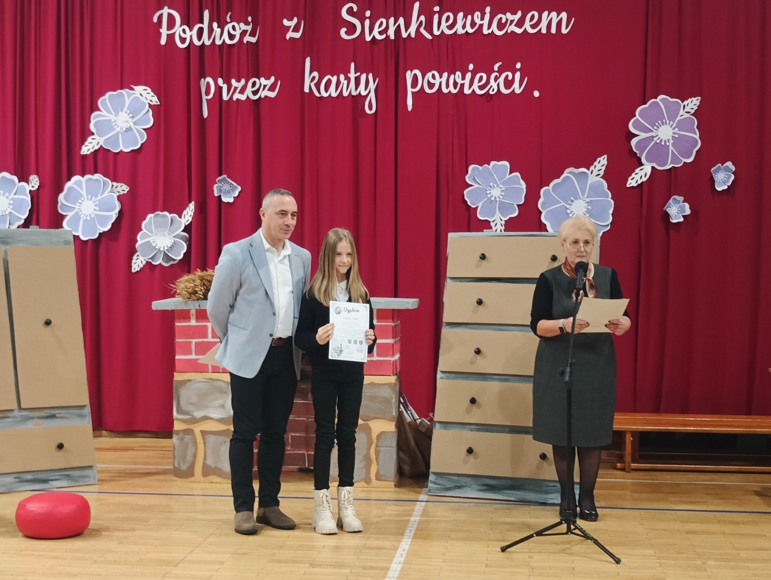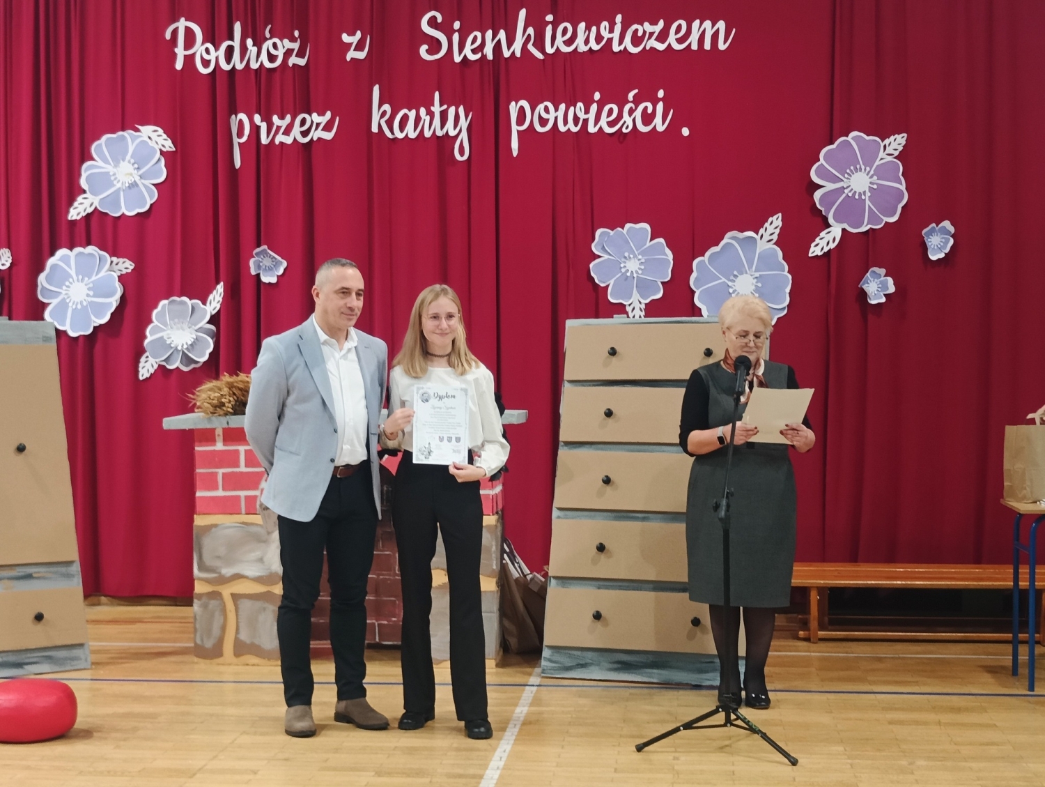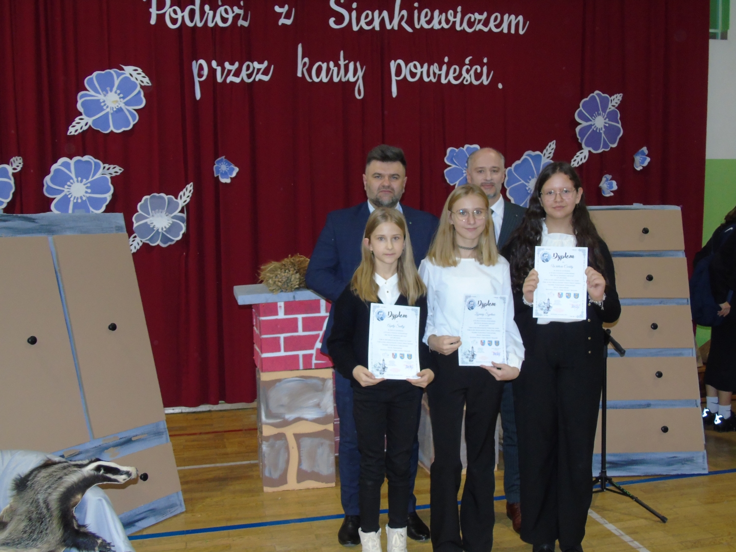Uroczyste wręczenie nagród laureatom jubileuszowej, XX edycji Wojewódzkiego Konkursu „Nam Henryk Sienkiewicz patronuje” zgromadziło w Zespole Szkół nr 1 w Nienadówce uczniów, ich opiekunów oraz znamienitych gości. Wśród grona laureatów znalazły się trzy uczennice naszej szkoły – Agata Sadlej z kl. IV, Wiktoria Ćwikła z kl. VI oraz Zuzanna Szpetnar z kl. VI, które pod kierunkiem pani Haliny Kyci zdobyły wyróżnienia w kategorii praca literacka.